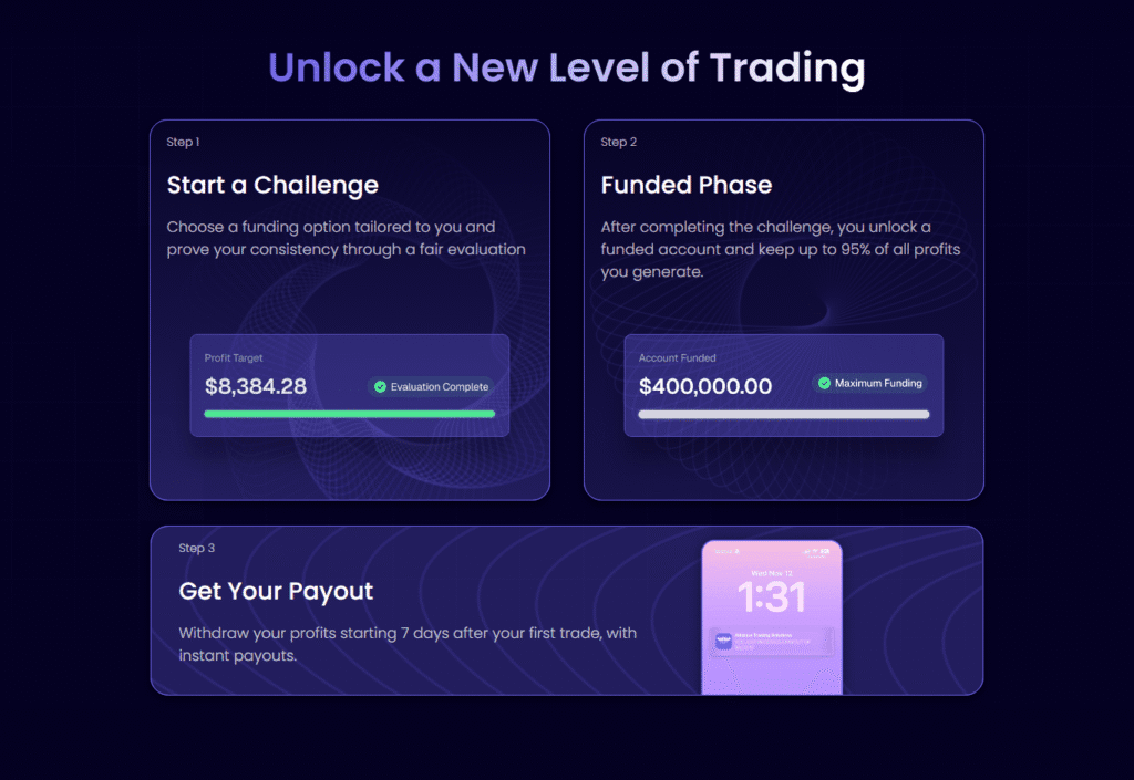 Challenge Requirement Like all prop firms, you must pass a 2-Step Challenge before accessing funded capital and salary benefits.