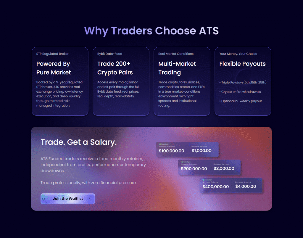 Looking for a prop firm that actually pays you a salary? ATS Funded is revolutionizing the industry as the world’s first prop firm to offer guaranteed monthly income to funded traders. But does this crypto-native, institutional-grade trading ecosystem live up to the hype?