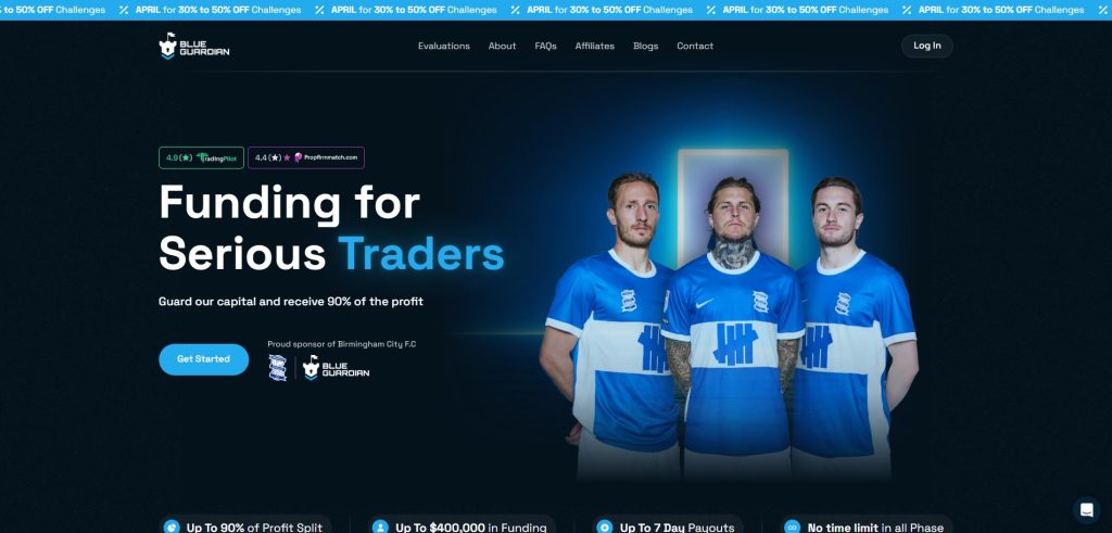 Blue Guardian is a Dubai-based proprietary trading firm founded in 2019 that funds traders with up to $400,000 and offers profit splits up to 90%. It provides flexible challenge programs with no time limits, realistic rules, and fast payouts within 7 days.