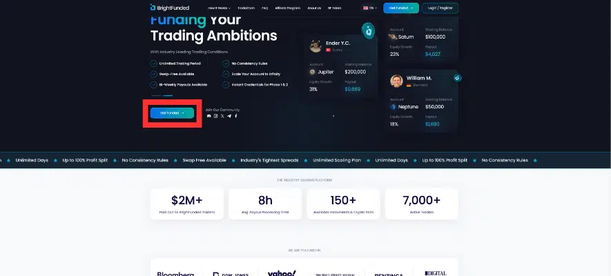 Bright Funded: A prop firm offering structured challenges (e.g., Trade2Earn) with token rewards for milestones. Focuses on financial literacy, entrepreneurship, and personal growth through community support and actionable guidance.
