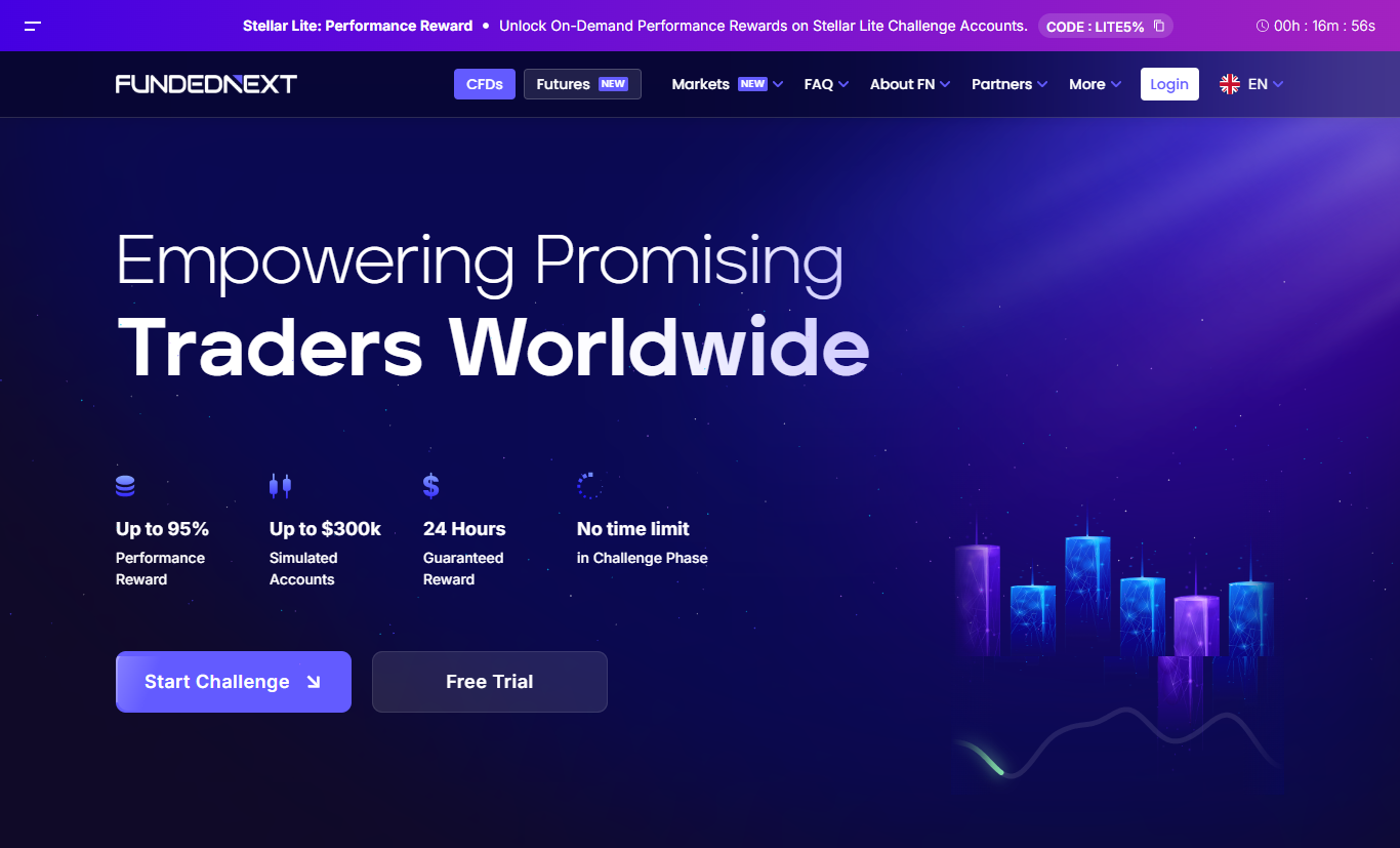 FundedNext is a leading proprietary trading firm committed to helping traders access significant capital and achieve success in today’s fast-paced financial markets. Serving traders worldwide, FundedNext offers growth potential with account scaling opportunities of up to $4 million. Their structured trading challenges are designed to evaluate skills under realistic market conditions, enabling traders to refine their strategies and expertise. Throughout the challenge phase, participants can earn a 15% profit share, which can increase to an impressive 95% once funded.