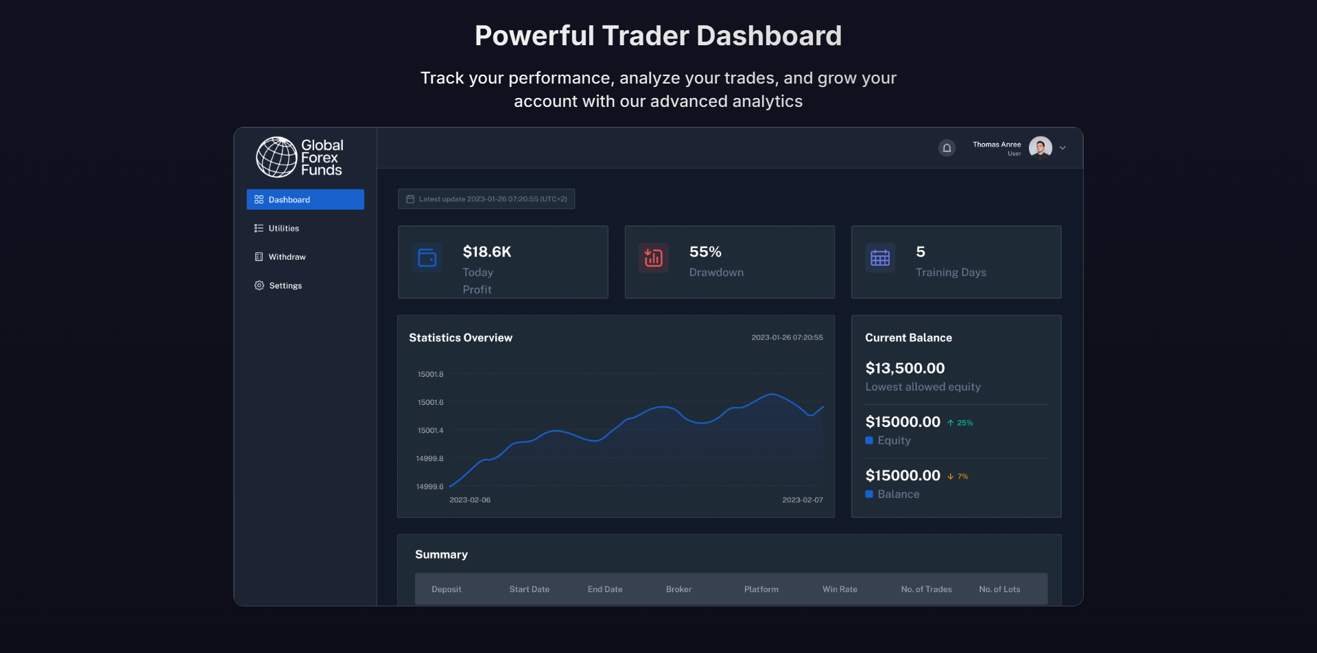 Global Forex Funds has not publicly disclosed the name or background of its CEO as of now. This absence of executive visibility appears to reflect the company’s focus on delivering a trader-first experience, transparent trading models, and accessible funding programs. While leadership details remain limited, the firm’s operational design suggests guidance rooted in proprietary trading, fintech strategy, and risk-managed growth. As Global Forex Funds continues to evolve, more insight into the leadership team — including the CEO — may become available.