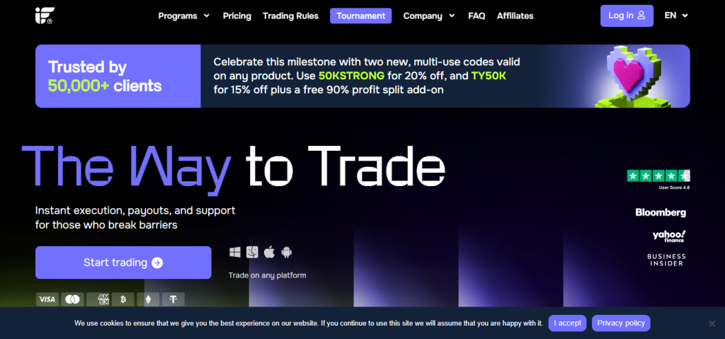 Instant Funding provides multiple payment options, including credit cards and cryptocurrencies. Choose the method that works best for you.
