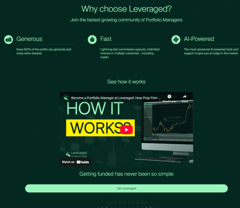 In this comprehensive review, we’ll break down everything you need to know about Leveraged—from their revolutionary Turbo Challenge starting at just $8.88 to their AI-powered trading tools, profit splits, and payout options. Whether you’re a beginner or an experienced trader, this review will help you decide if Leveraged is the prop firm that fits your trading goals.