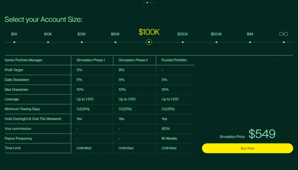 - Multiple programs – Turbo, Sprint, and Classic options for different trading styles