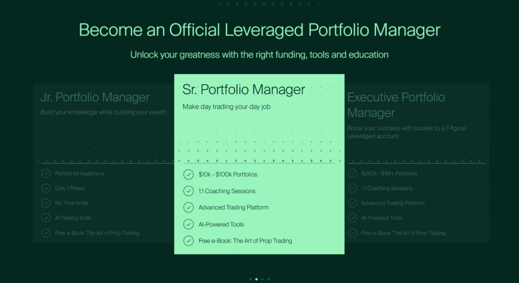 Leveraged offers three distinct programs designed for different trading styles and goals: