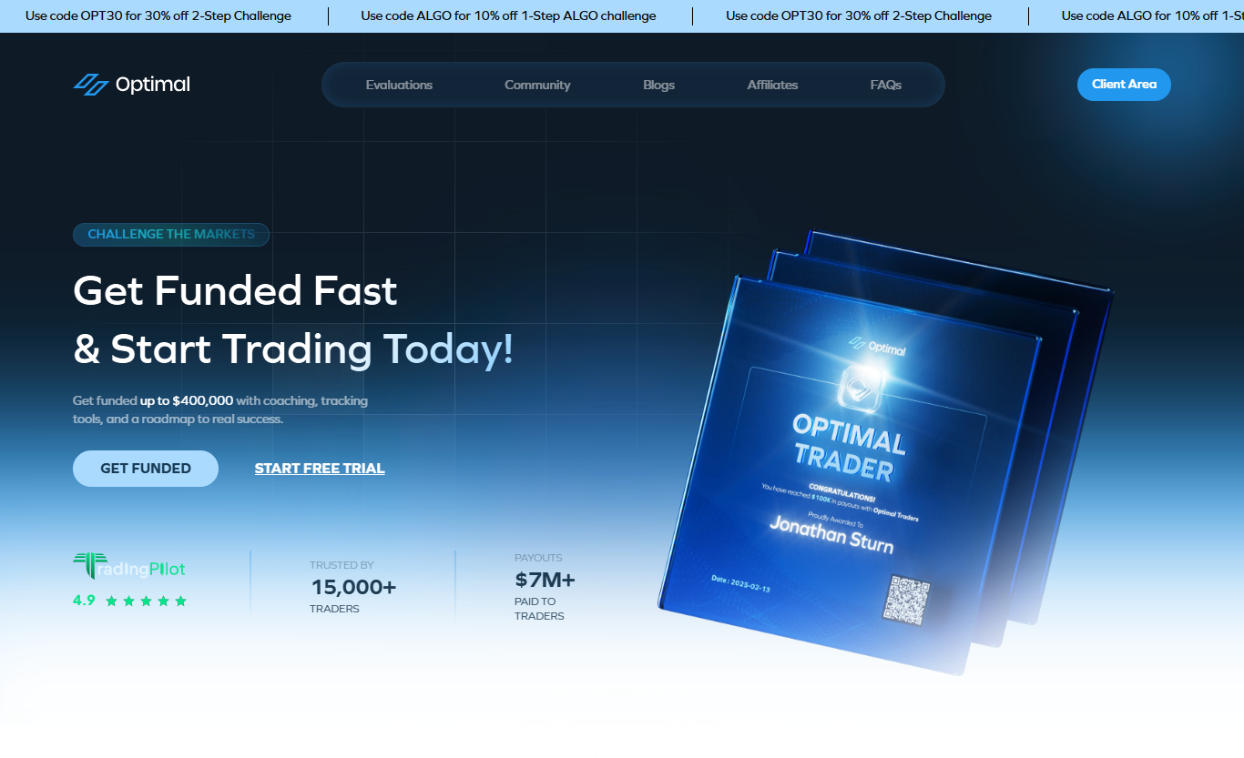 Optimal Trader has quickly established itself as one of the most trusted and transparent prop trading firms in the industry. With a growing community of over 15,000 active traders, the firm is recognized for providing a fast, reliable, and efficient trading experience through its advanced dashboard and transparent funding process.