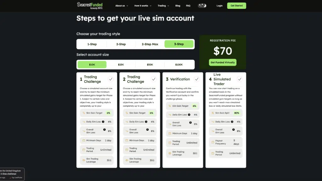 Seacrest Funded provides different account sizes to suit various trading styles and risk levels. Choose an account that fits your trading goals. If you choose a small account or a large fund, an option exists for you.